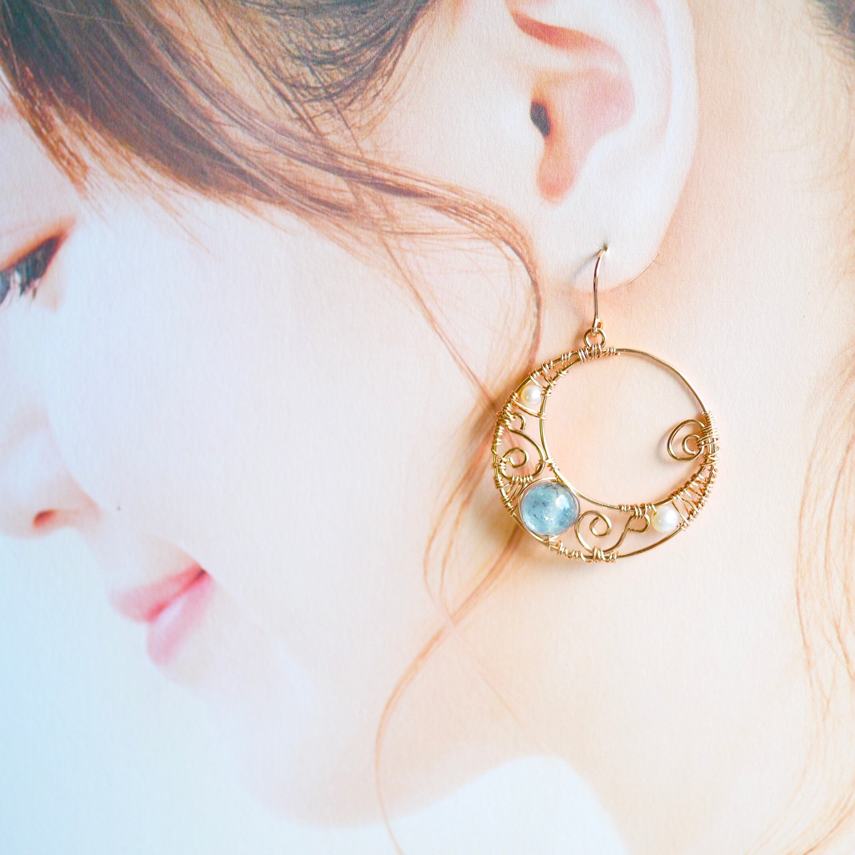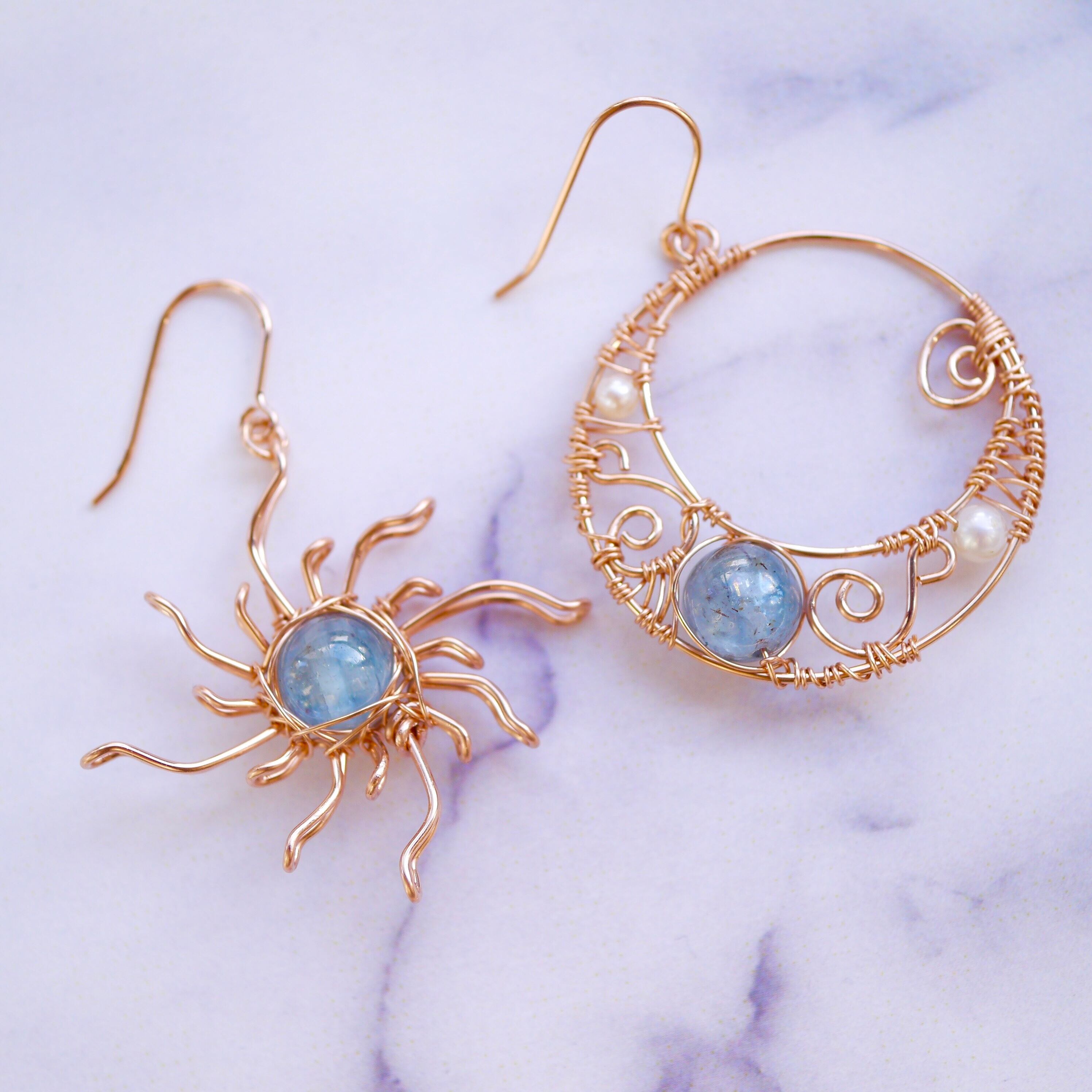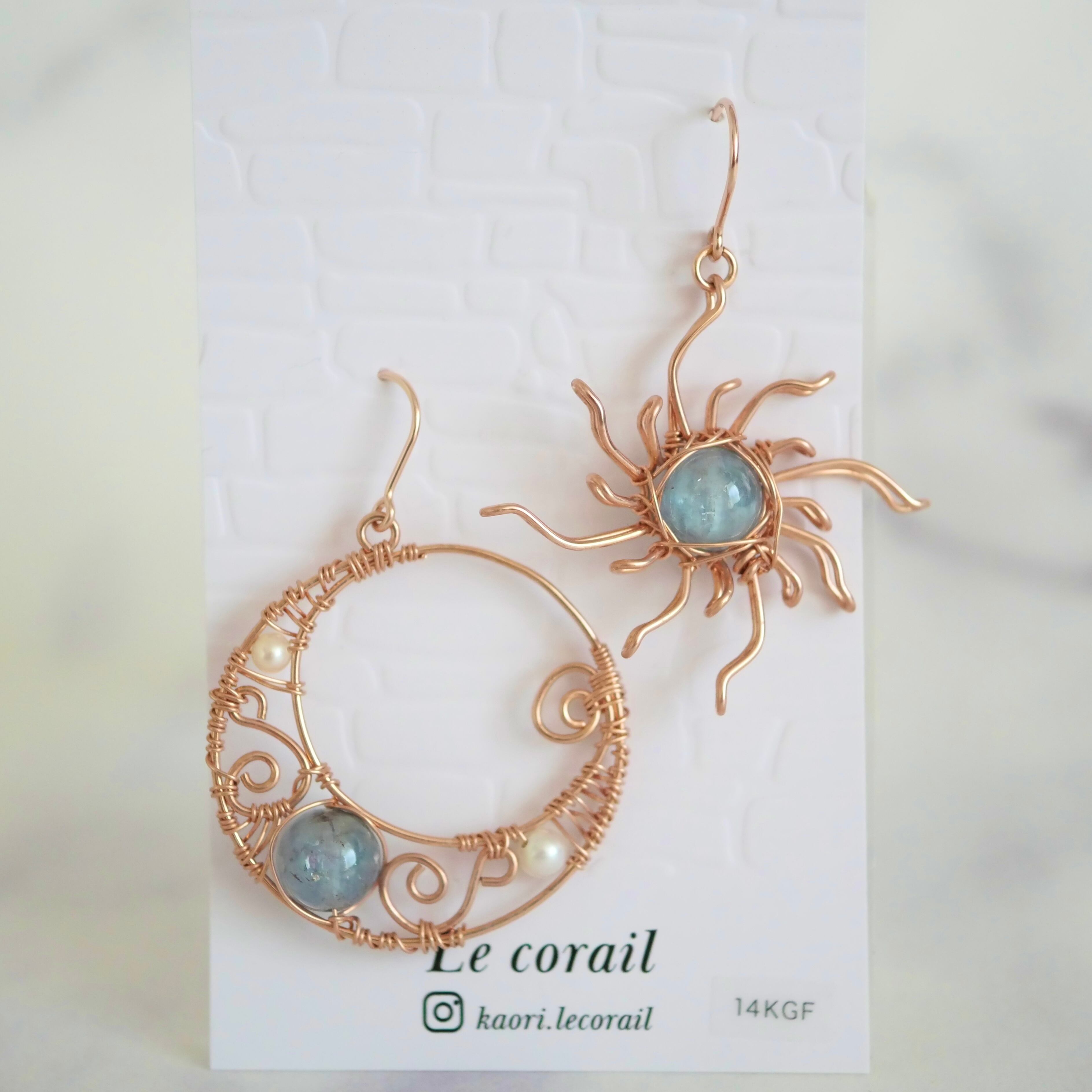 Mahana&Avae pierce 太陽と月 カイヤナイト 14KGFローズゴールド