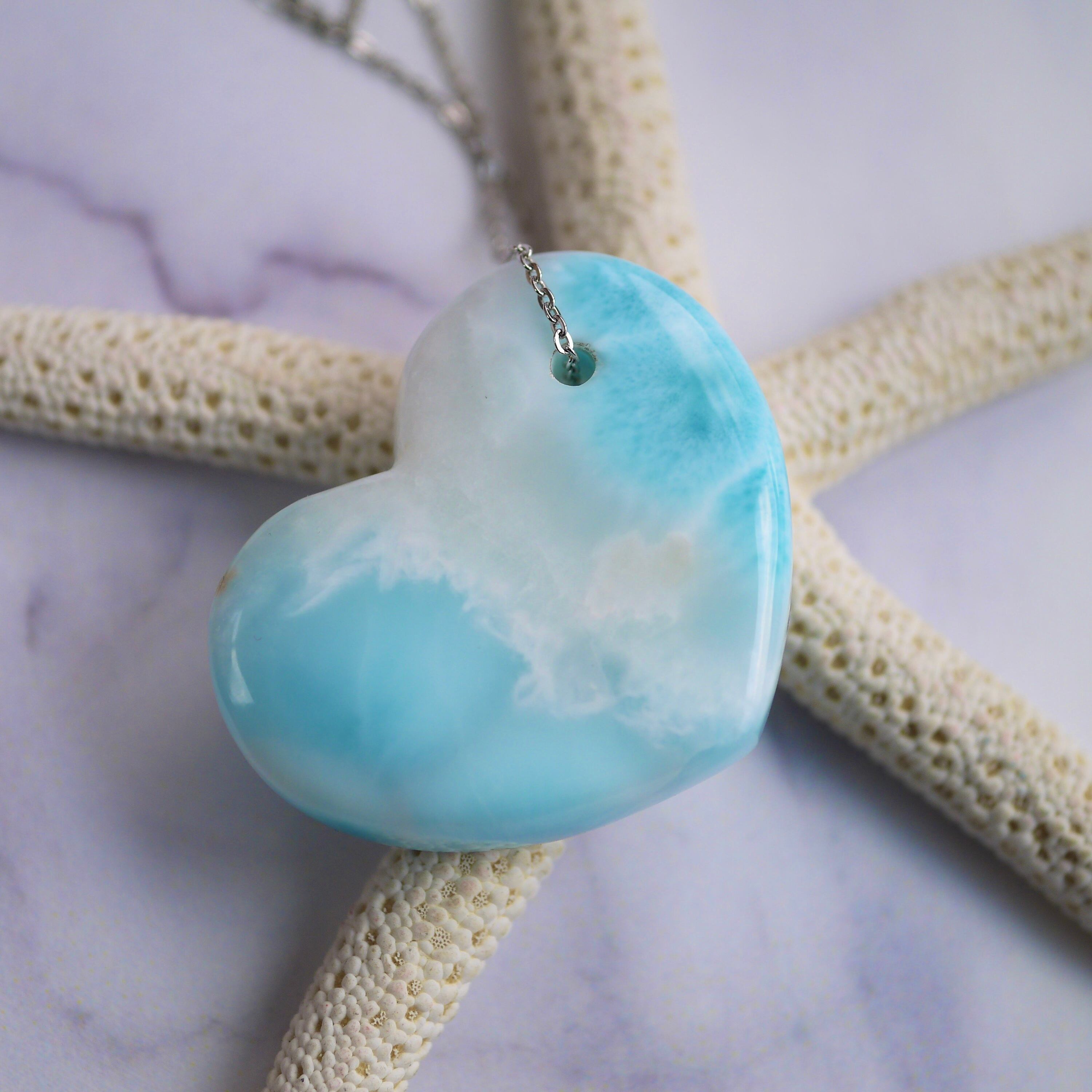 海のような天然石ラリマーが特大のハートデザイン