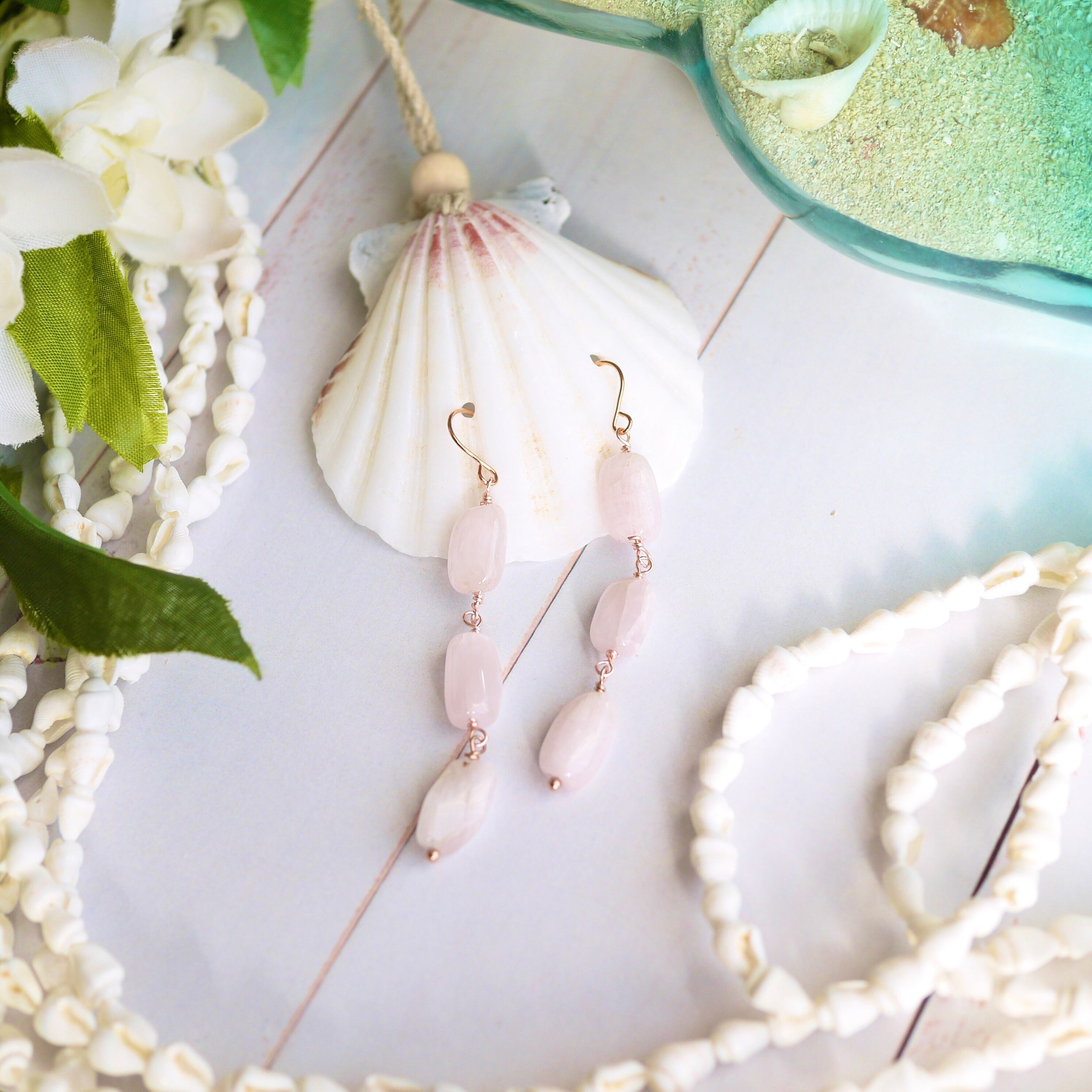 クンツァイトは、恋愛成就や心身バランスの調整といったパワーストーンとしても人気があります。あなた自身の美しさや幸せを祈り、このラインピアスを身に付けてみませんか。