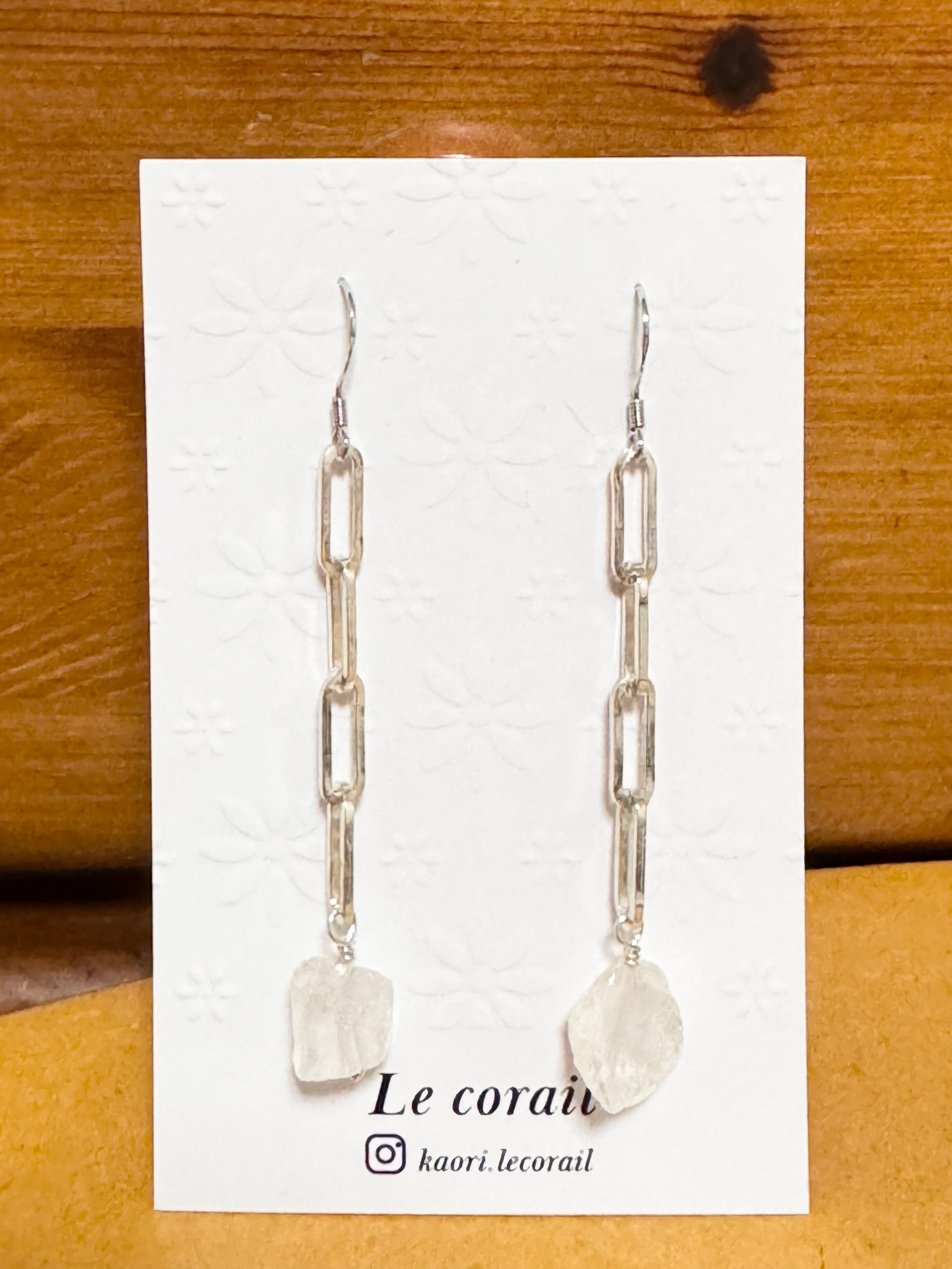 ラフロック水晶 チェーンピアスは、ハンドメイドの美しいデザインが特徴のアクセサリーです。